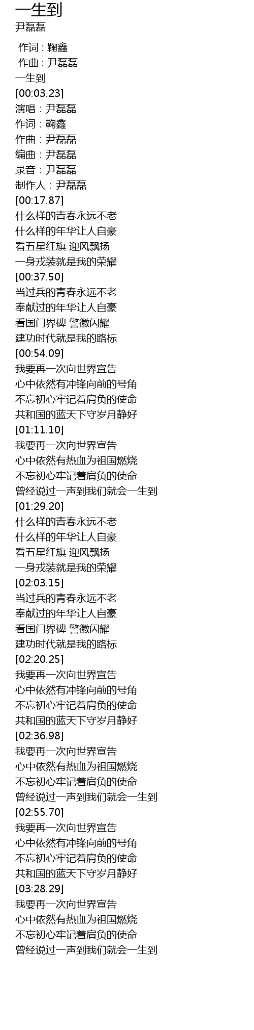 | [02:03.75] | 当过兵的青春永远不老 |