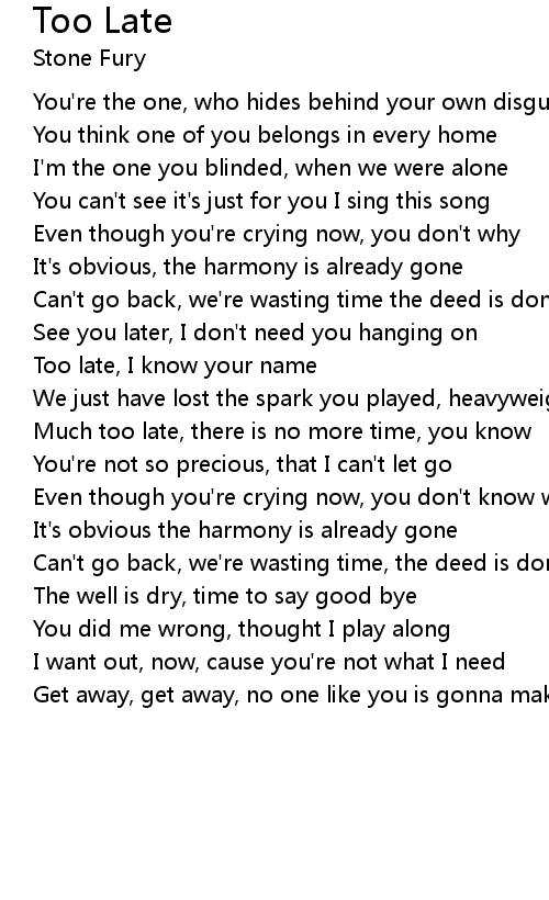 Much too late, there is no more time, you know |