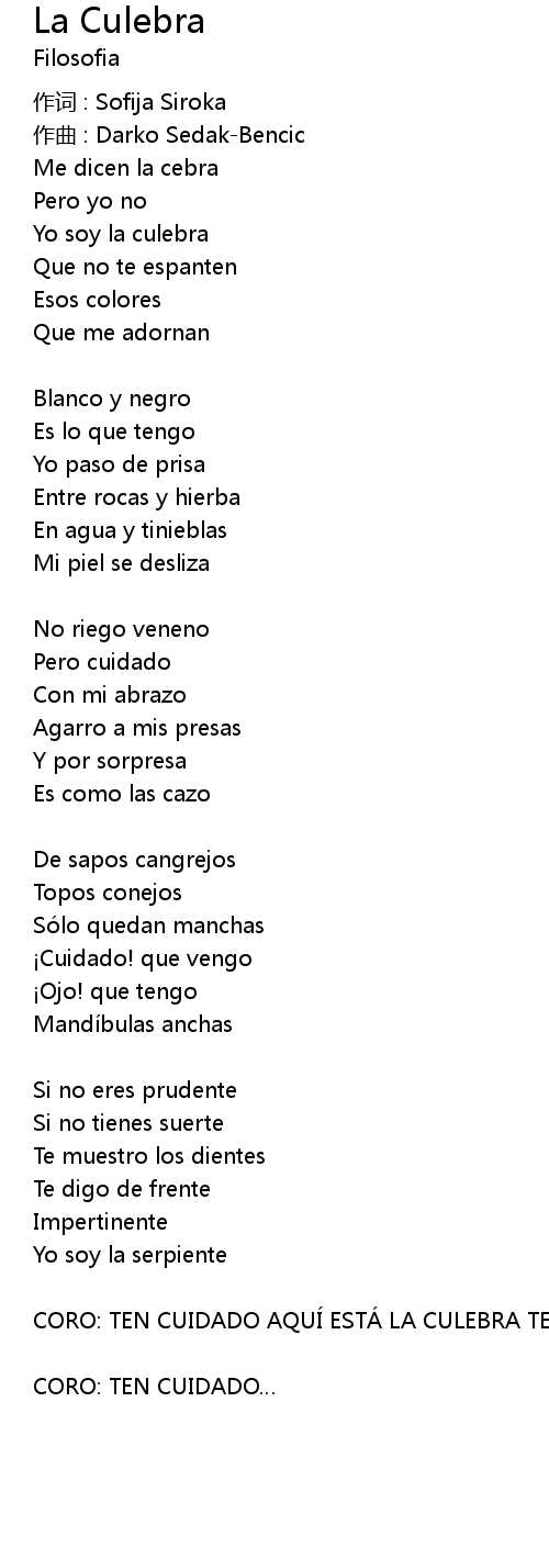 | CORO: TEN CUIDADO AQUÍ ESTÁ LA CULEBRA TE COMERÁ | |
