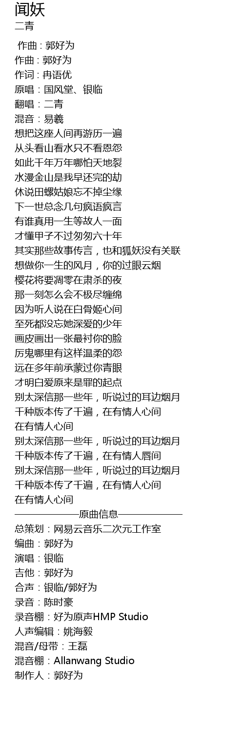 | [00:07.396] | 原唱:国风堂、银临 |