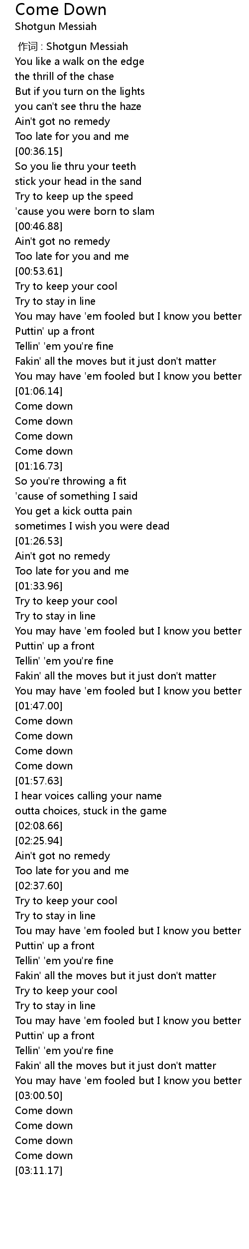 | [01:55.50] | Come down |