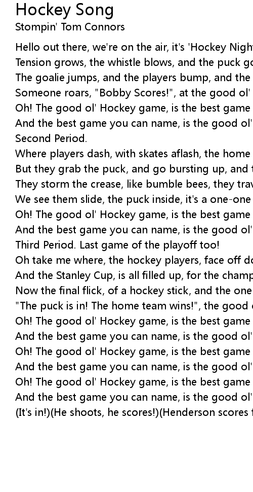 Oh! The good ol' Hockey game, is the best game you can name. |