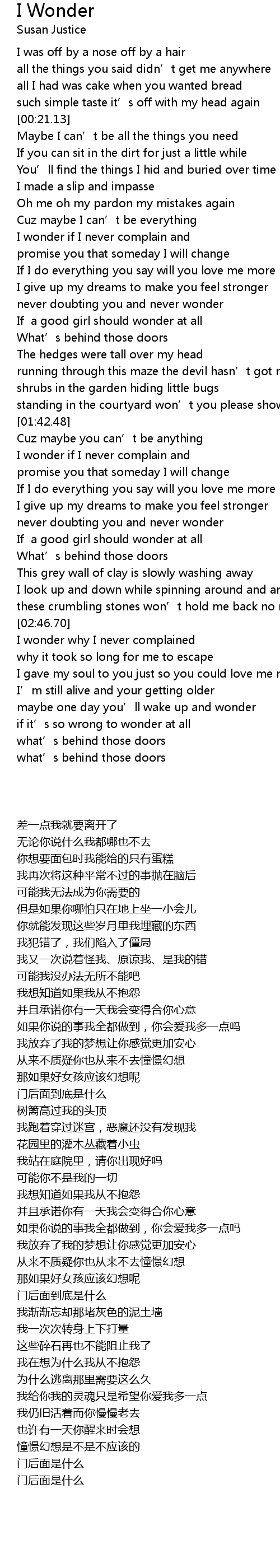 | [02:53.51] | I wonder why I never complained |