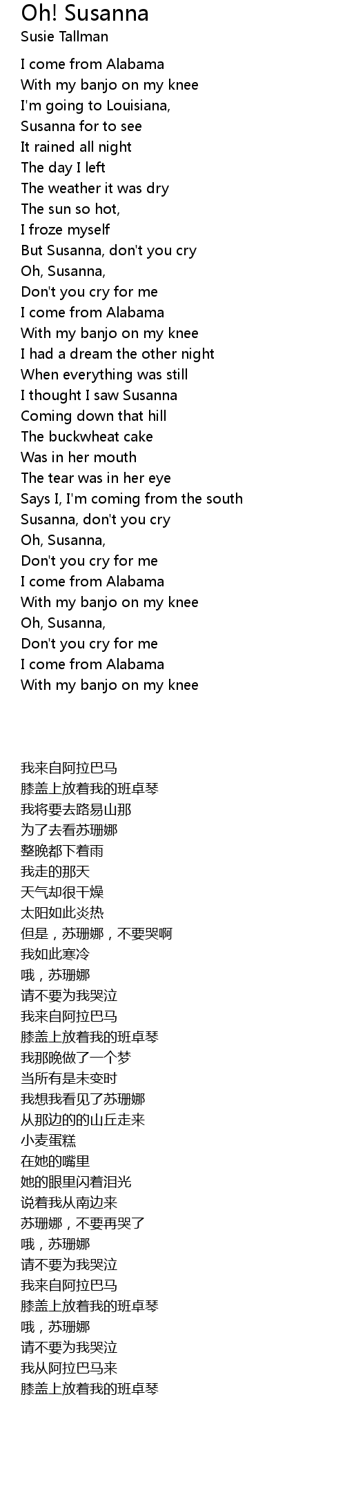 Susanna, don't you cry |