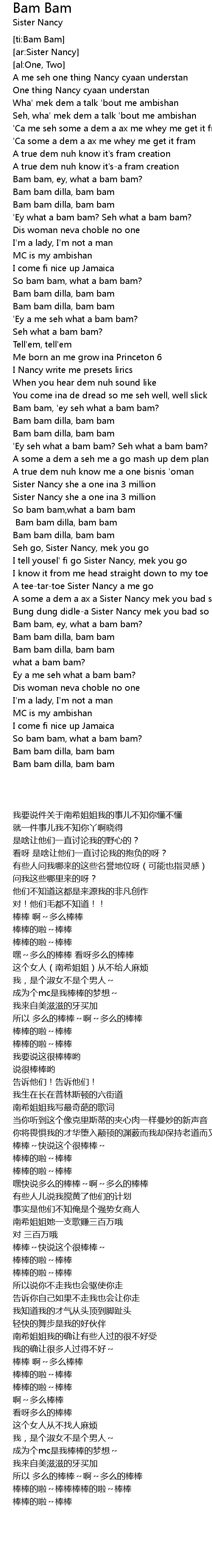[00:45.40] 'Ey what a bam bam? Seh what a bam bam?