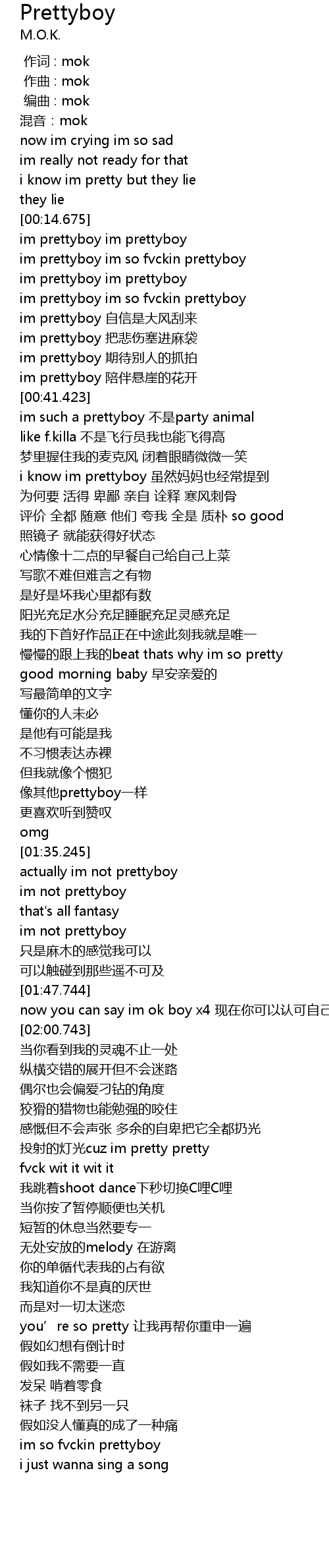 | [00:52.422] | i know im prettyboy suī rán mā mā yě jīng cháng tí dào |