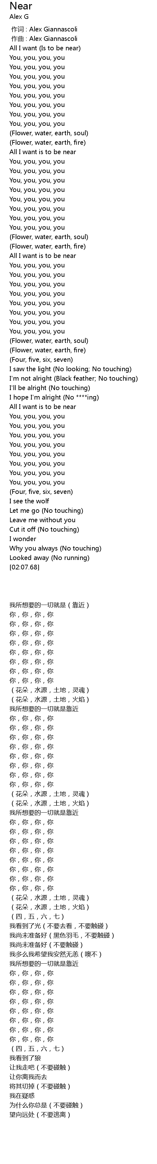 | [01:07.28] | I'm not alright (Black feather; No touching) |