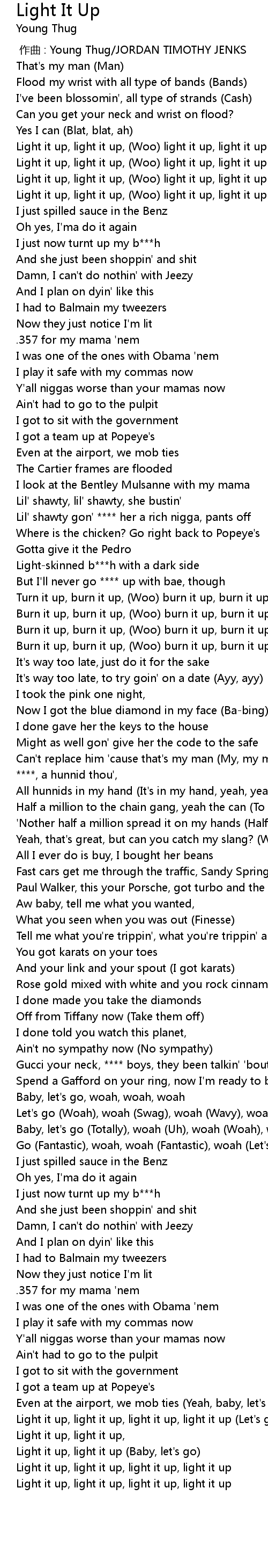 | [00:17.13] | Light it up, light it up, Woo light it up, light it up Woo |
