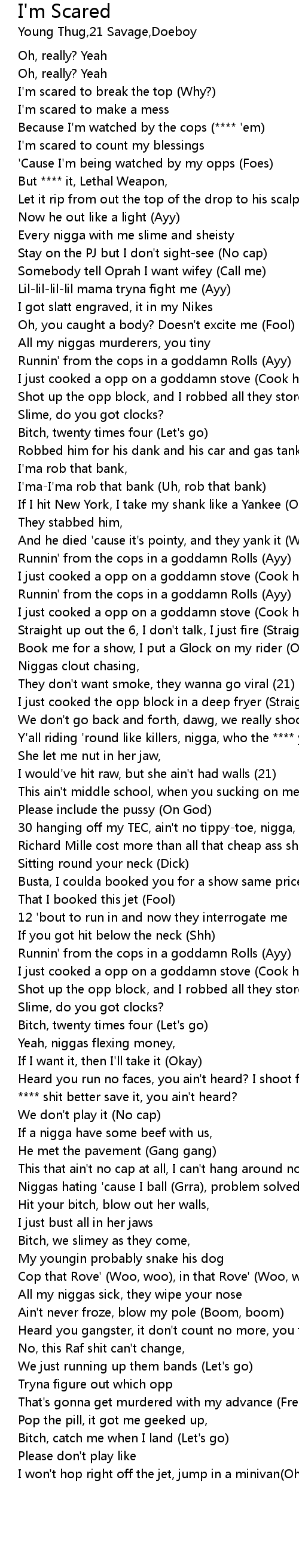 Y'all riding 'round like killers, nigga, who the **** you hit? (21) |