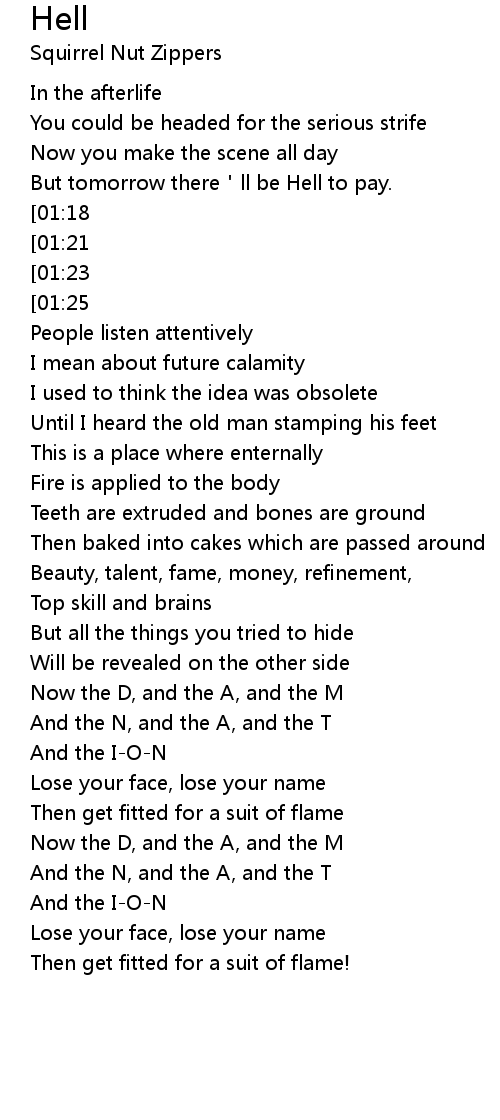 | [02:03][01:25][00:39] | But tomorrow there'll be Hell to pay |