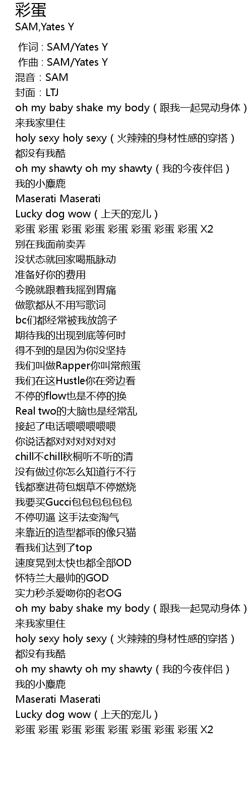 | [01:52.868] | 彩蛋 彩蛋 彩蛋 彩蛋 彩蛋 彩蛋 彩蛋 彩蛋 X2 |