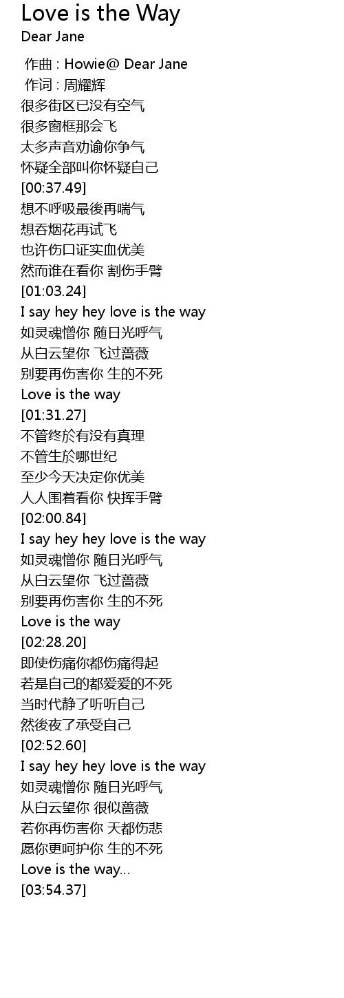 | [01:03.60] | I say hey hey love is the way |