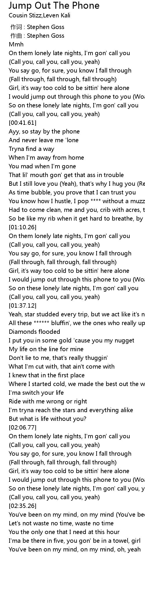 | [02:24.12] | I would jump out through this phone to you (Woah, woah, woah) |