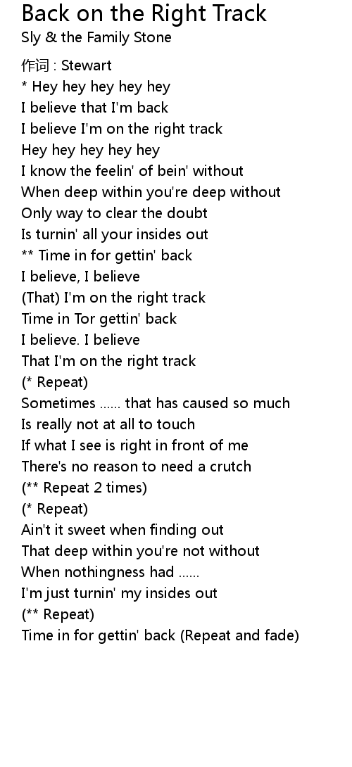 | Song | Back on the Right Track |