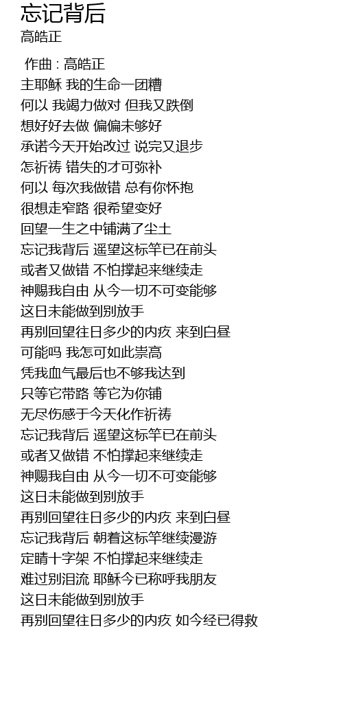 | [02:02.56] | 忘记我背后 遥望这标竿已在前头 |