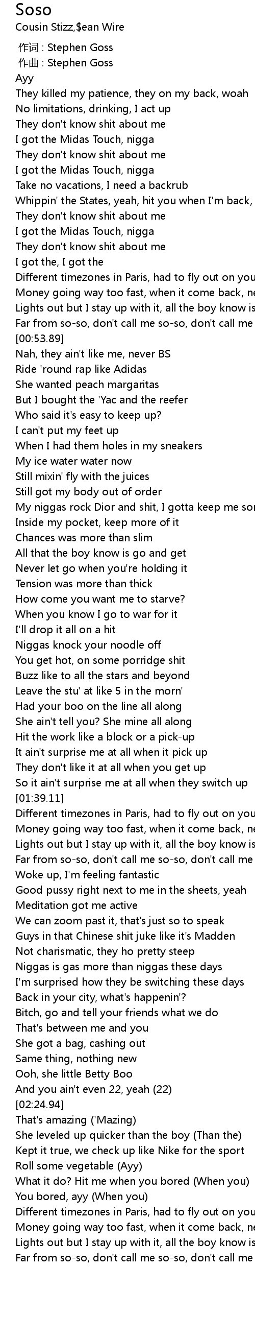 | [00:00.00] | 作词 : Stephen Goss |