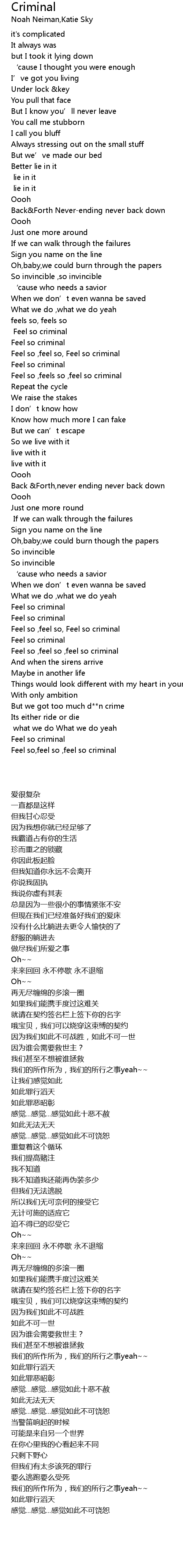 | [01:22.69] | Feel so ,feels so ,feel so criminal |