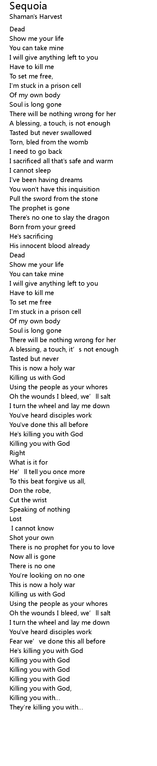 | Killing you with God, | |