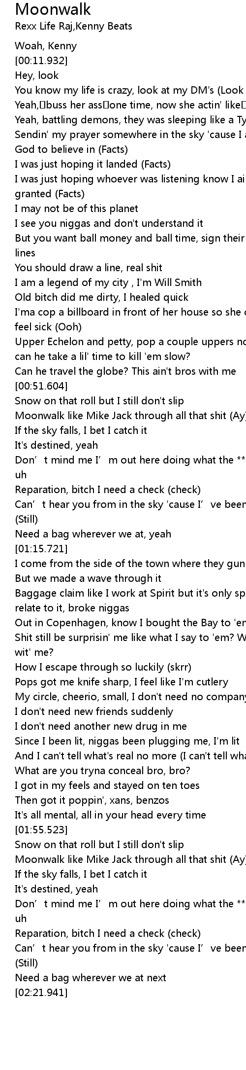 | [00:54.943] | Moonwalk like Mike Jack through all that shit Ay |