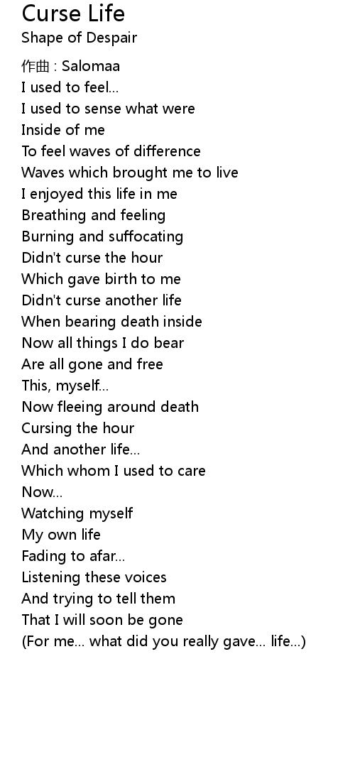 | Didn't curse another life | |