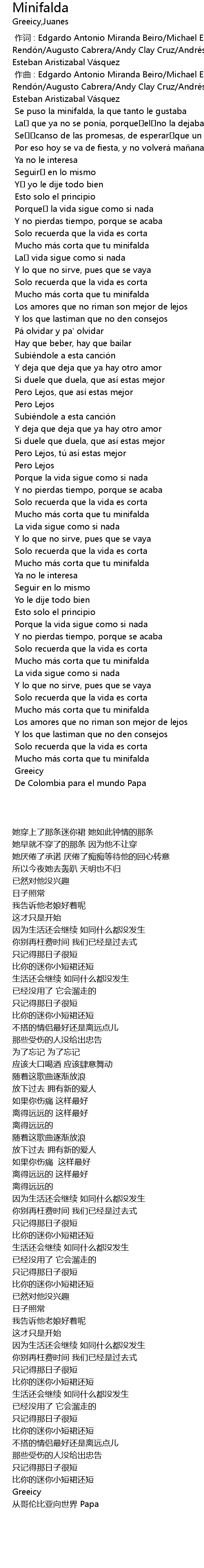| [00:00.000] | 作词 : Edgardo Antonio Miranda Beiro/Michael Egred/Greeicy Rendón/Augusto Cabrera/Andy Clay Cruz/Andrés Torres/Mauricio Rengifo/Juan Esteban Aristizabal Vásquez |