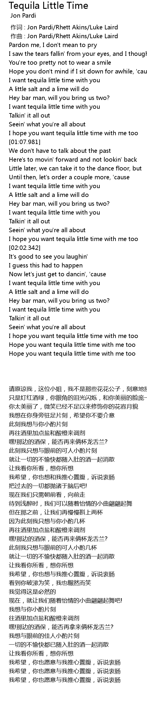 | [00:00.000] | 作词 : Jon Pardi/Rhett Akins/Luke Laird |