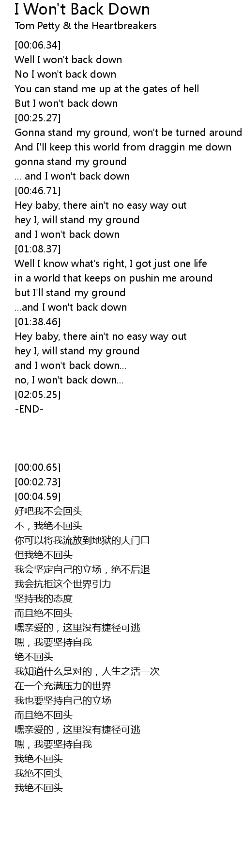 No I won't back down |