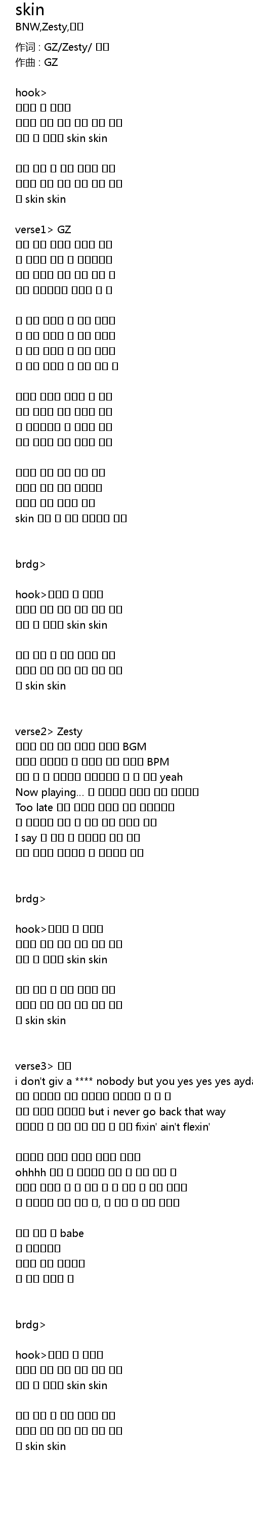 作词 : GZ/Zesty/ 뱀피 |