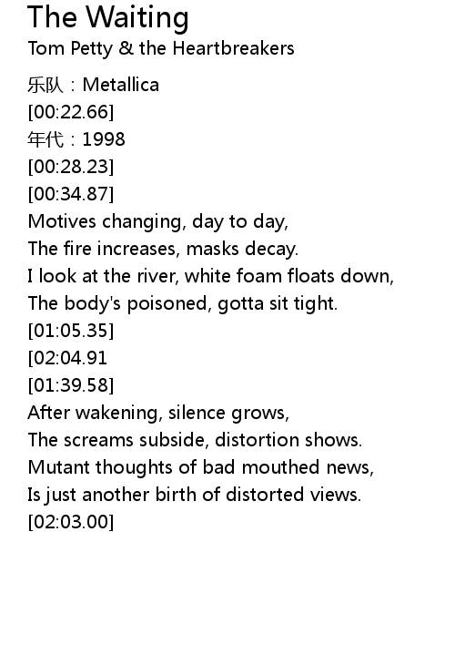 | [04:19.06][02:04.91][01:05.74] | The wait, the wait, the wait, the wait. |