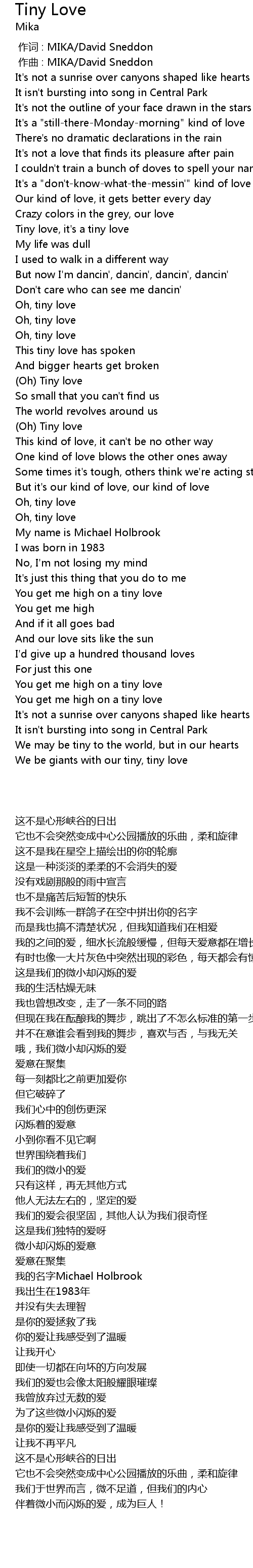 | [01:58.43] | Oh Tiny love |