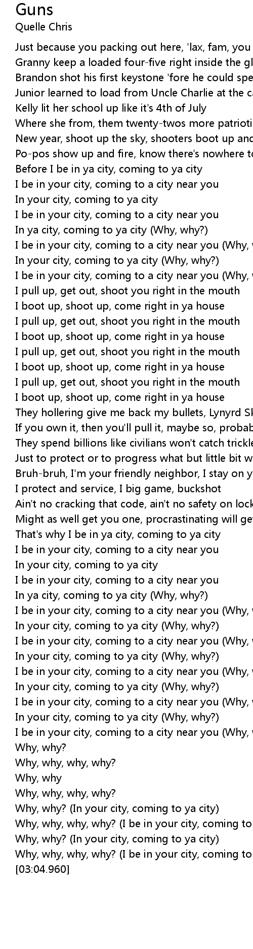 Why, why, why, why? (I be in your city, coming to a city near you) |