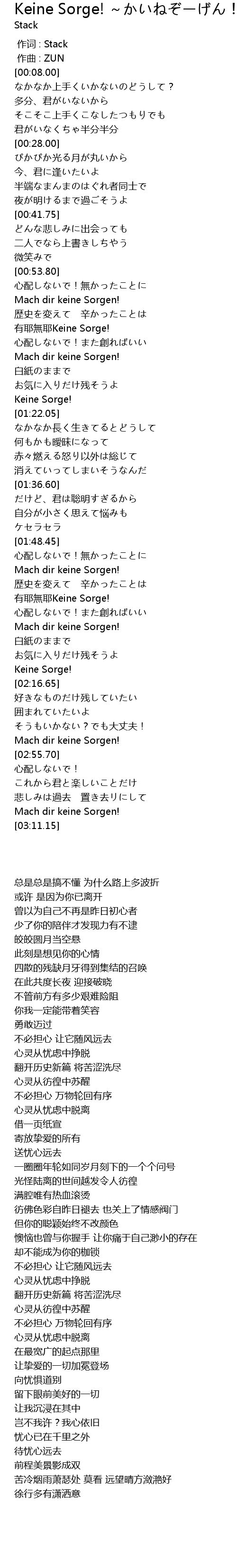 | [01:05.70] | 有耶無耶Keine Sorge! |