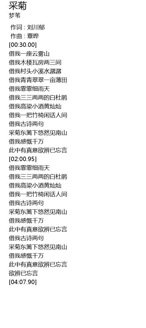| [01:36.20] | 采菊东篱下悠然见南山 |