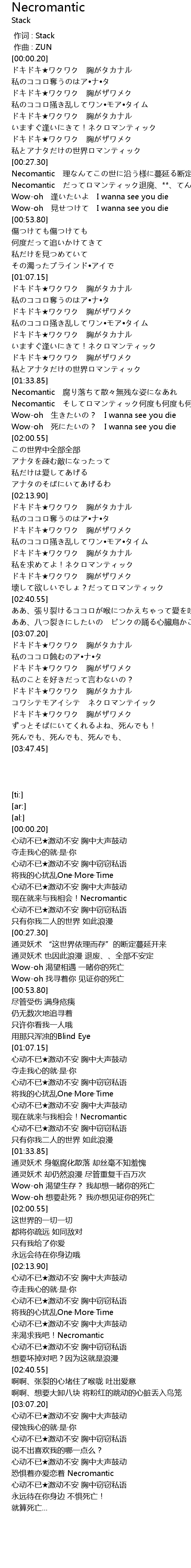 | [00:43.85] | Necomantic だってロマンティック退廃、**、てんで不安定 |