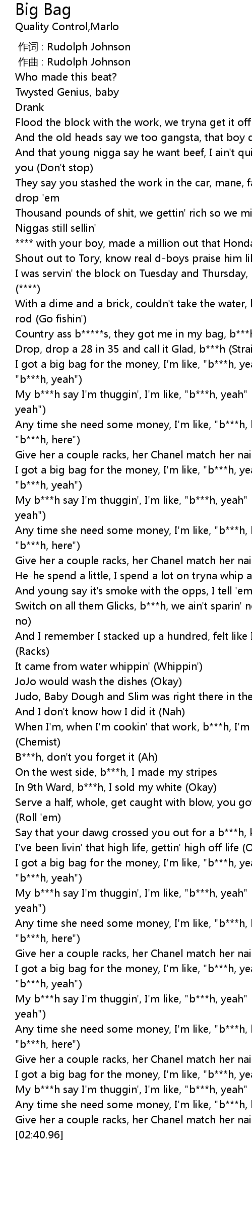| [02:26.72] | I got a big bag for the money, I'm like, "b***h, yeah" |