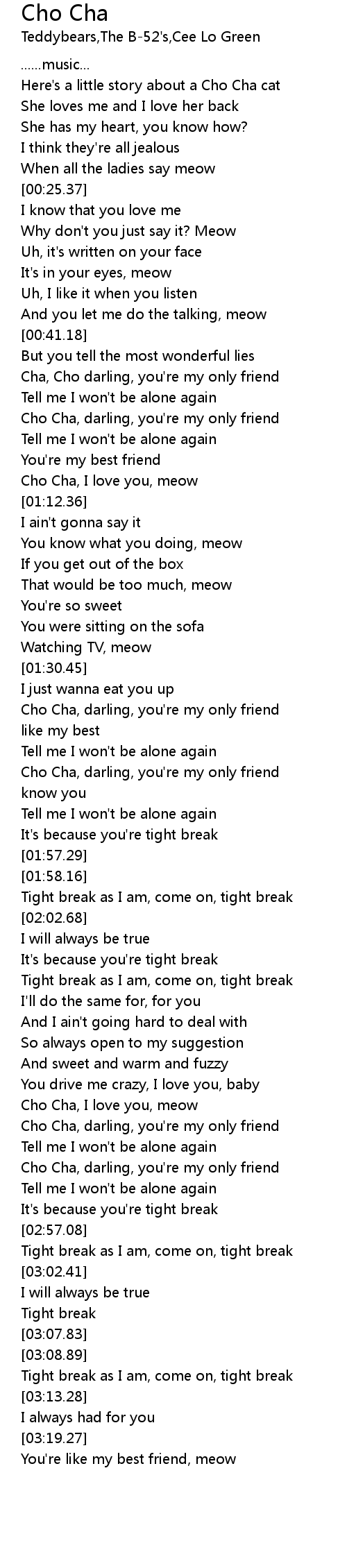 Cho Cha, darling, you're my only friend |