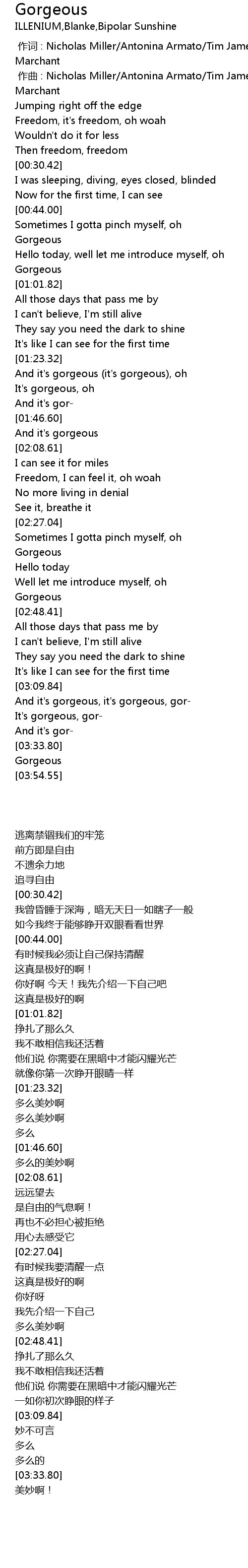 | [03:11.37] | And it' s gorgeous, it' s gorgeous, gor |