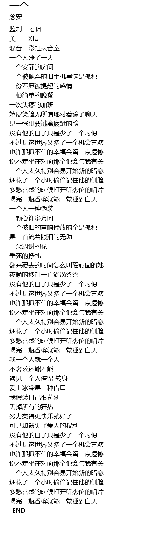 | [00:46.51] | 没有他的日子只是少了一个习惯 |