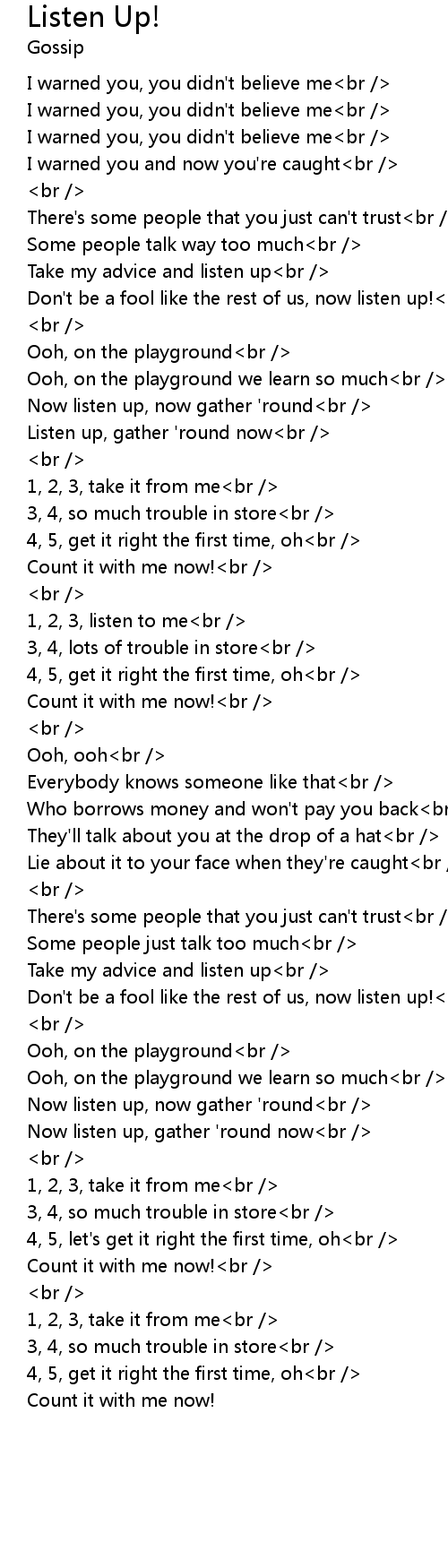Take my advice and listen up<br /> |