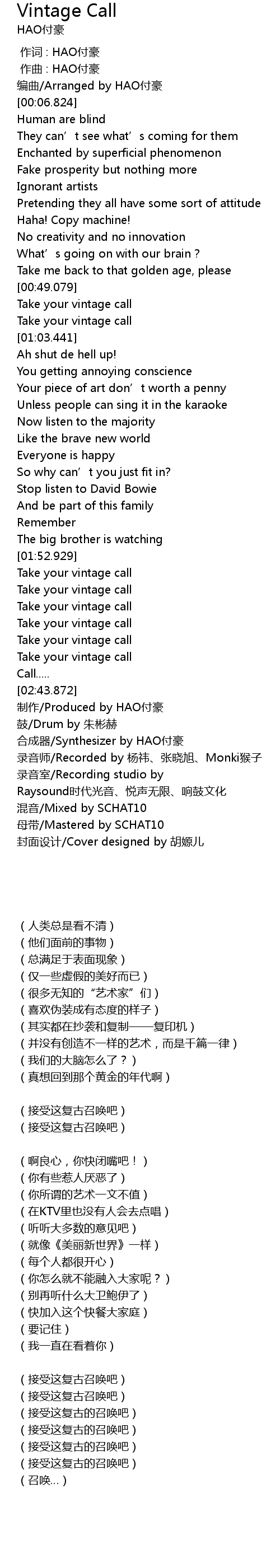 | [02:45.024] | 制作/Produced by HAO付豪 |