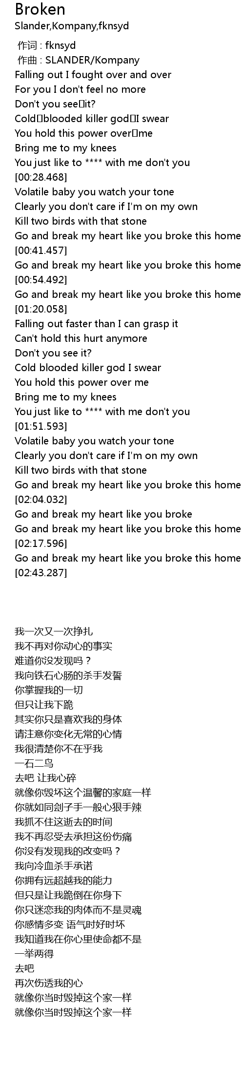 | [00:01.000] | zuo qu : SLANDER Kompany |