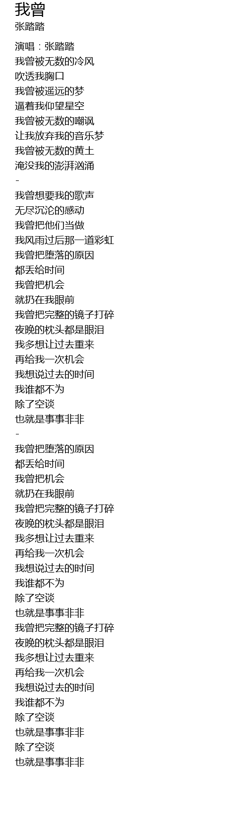 | [00:00.700] | 演唱:张踏踏 |
