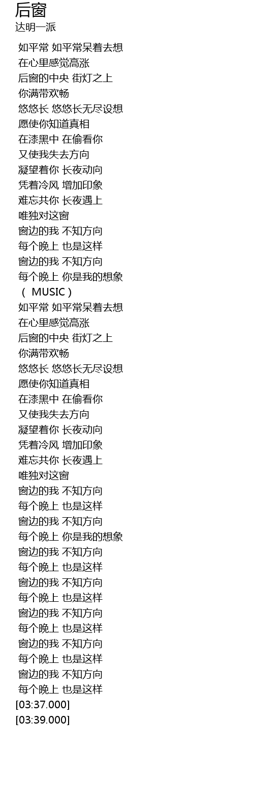 | [03:23.000] | 窗边的我 不知方向 |