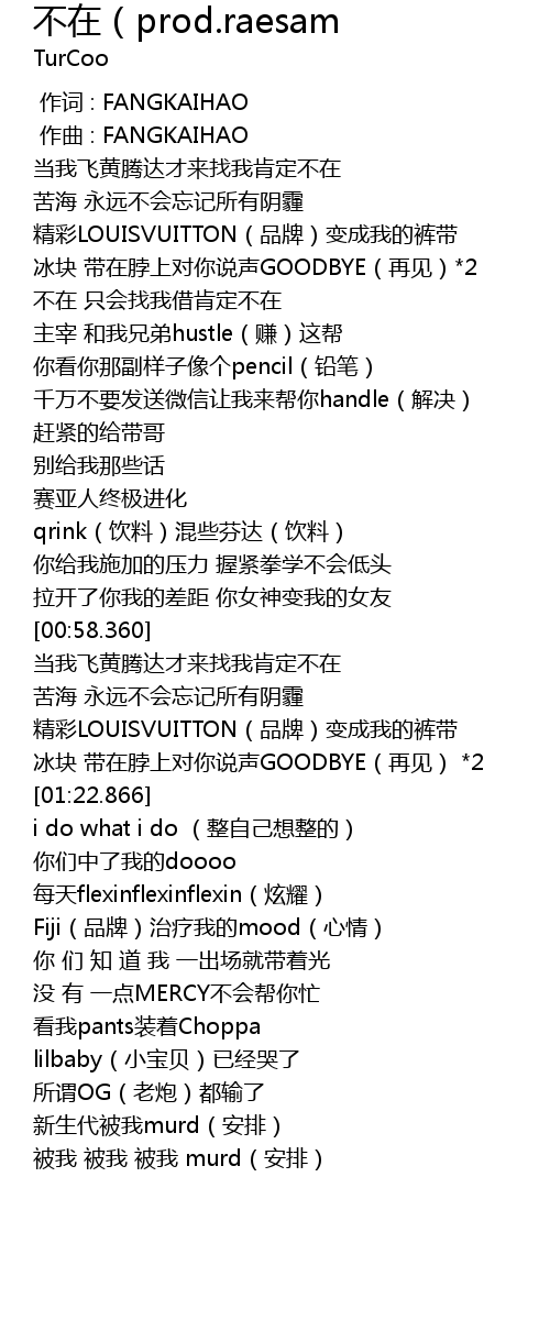 | [01:26.107] | 每天flexinflexinflexin(炫耀) |
