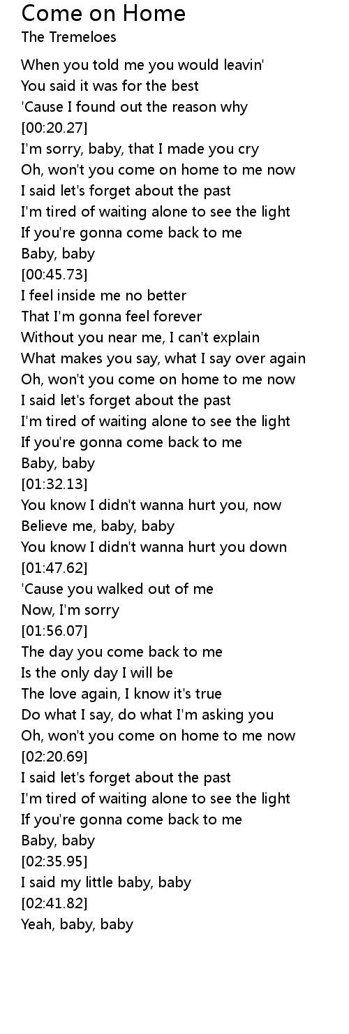 Oh, won't you come on home to me now |