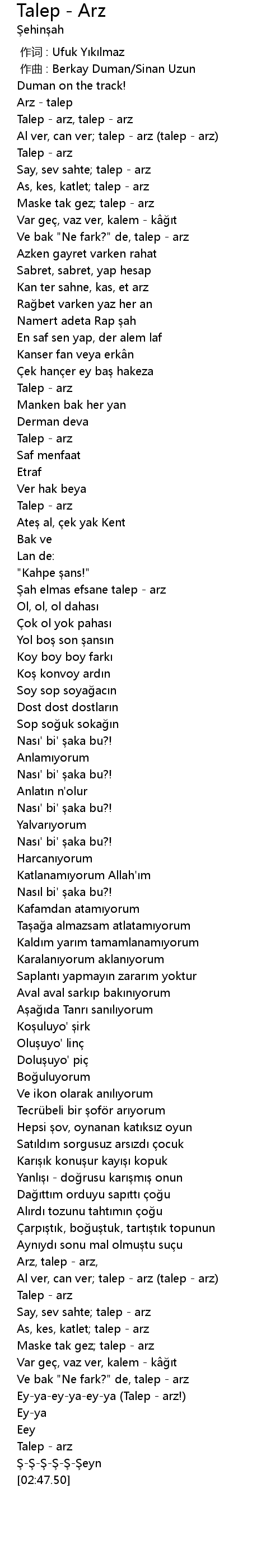 | [02:20.23] | Al ver, can ver talep arz talep arz |