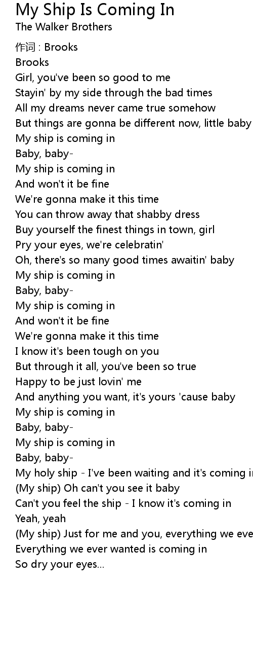 | My ship Oh can' t you see it baby | |