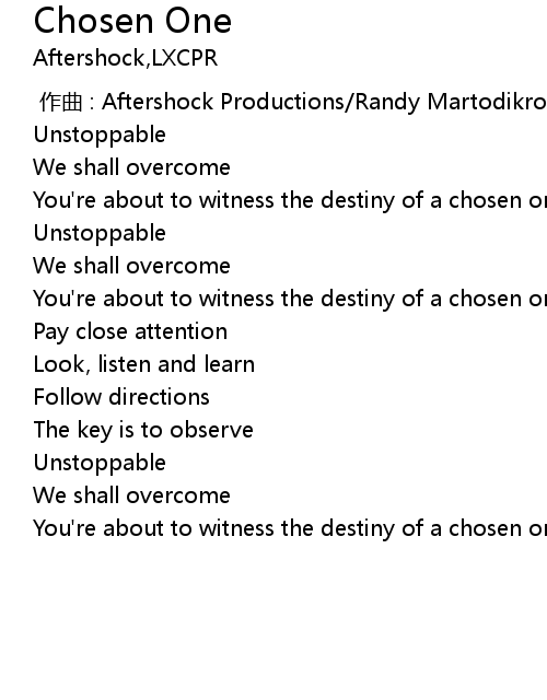 | [00:34.71] | You're about to witness the destiny of a chosen one |
