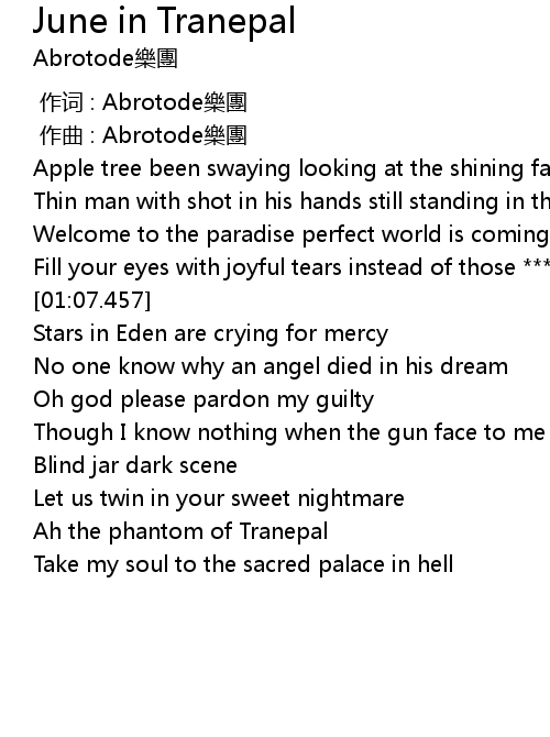 | [00:01.000] | 作曲 : Abrotode樂團 |