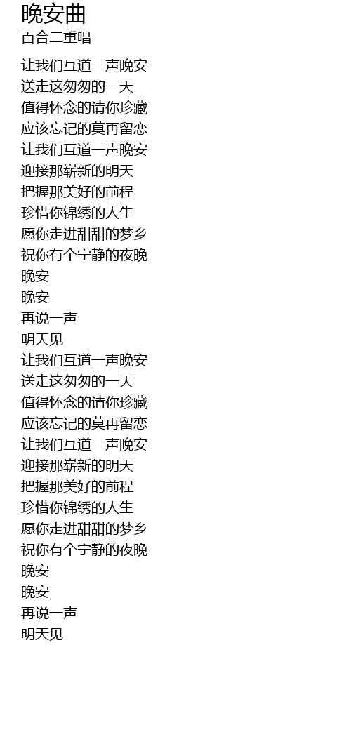 | [01:30.75] | 晚安 |